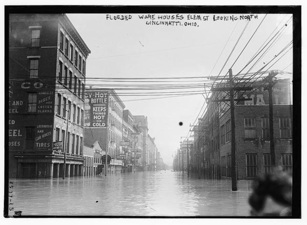 Flooded warehouses Elm St. looking north, Cincinnati, Ohio
