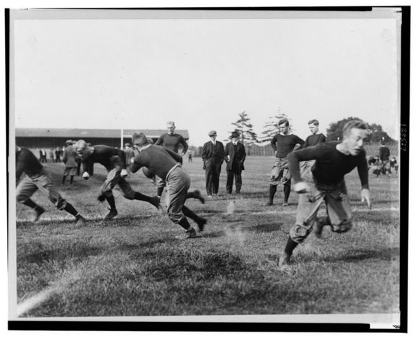 James J. Jeffries, head-and-shoulders portrait, facing left, shown listening to Sam Berger at left