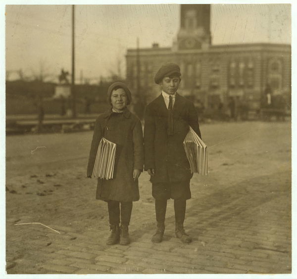 (For Child Welfare Exhibit 1912-13.) Sammie Weits, 8 year old newsie, helps brother Bennie. 12 yrs. old. The latter sells until midnight some nights. Location: Providence, Rhode Island.