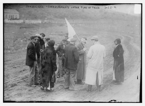 Close of Battle, Forbes, Colo. Removing dead: Correspondents under truce flag