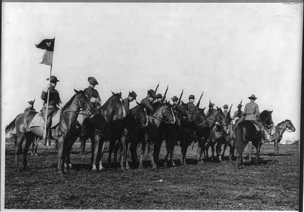 Fort Sam Houston, Tex., 1911-1912: squad of cavalry, Co. M, 11th Regiment; lining up