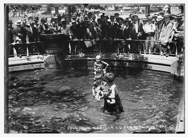 Fountains, Madison Sq. Park on hot day
