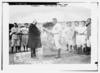 New York Yankees president Frank Farrell presents loving cup to Yankees manager Harry Wolverton as Red Sox and Yankees players look on at Hilltop park, New York, April 11, 1912 (baseball)