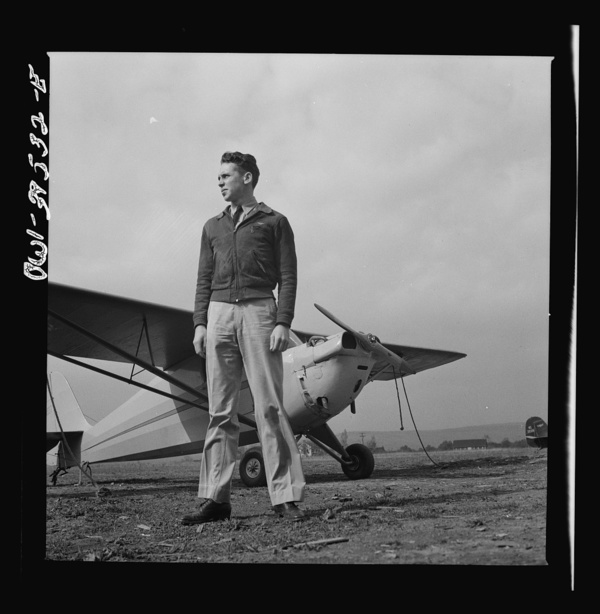 Frederick, Maryland. Walter Spangenberg, a student at Woodrow Wilson High School, at the Stevens Airport