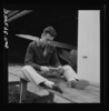 Frederick, Maryland. Walter Spangenberg, a student at Woodrow Wilson High School, studying his English lesson while waiting to fly at the Stevens Airport