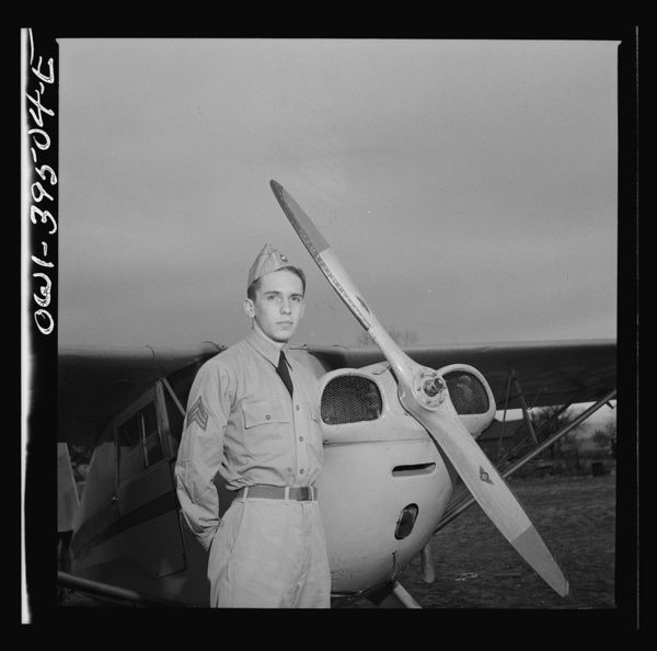 Frederick, Maryland. Walter Spangenberg, a student at Woodrow Wilson High School, in his Civil Air Patrol uniform at the Stevens Airport where he takes flying lessons