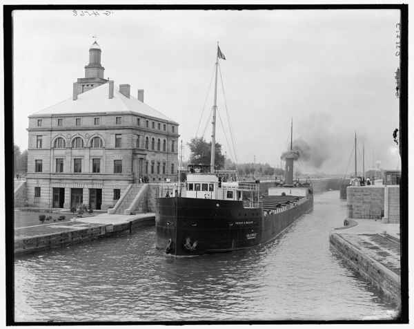 Freighter in Poe Lock, looking down, Sault Ste. Marie, Mich.