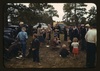 Crowd eating free barbeque dinner at the Pie Town, New Mexico Fair