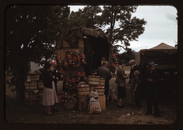 Fruit wagon at the Pie Town, New Mexico Fair. There is no fruit grown in this section and the people depend on outside truckers to bring it in