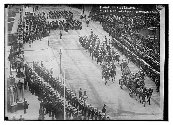 The funeral procession of the Late King Edward VII. the royal carriages.