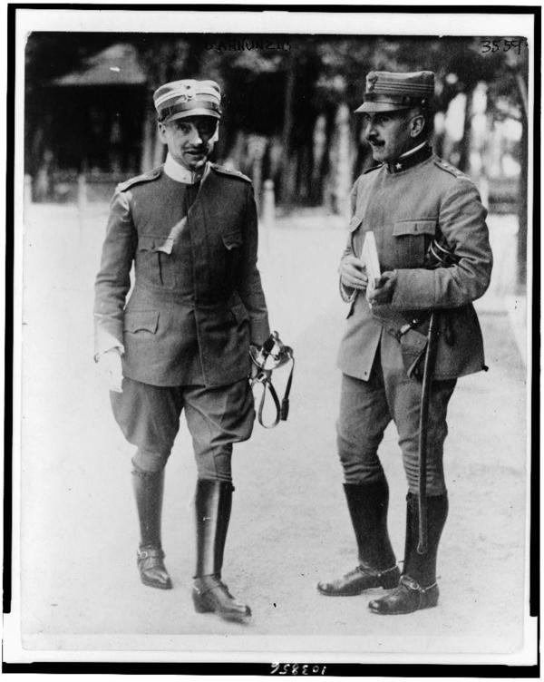 Gabriele D'Annunzio, full-length portrait, standing, facing slightly right, with another officer