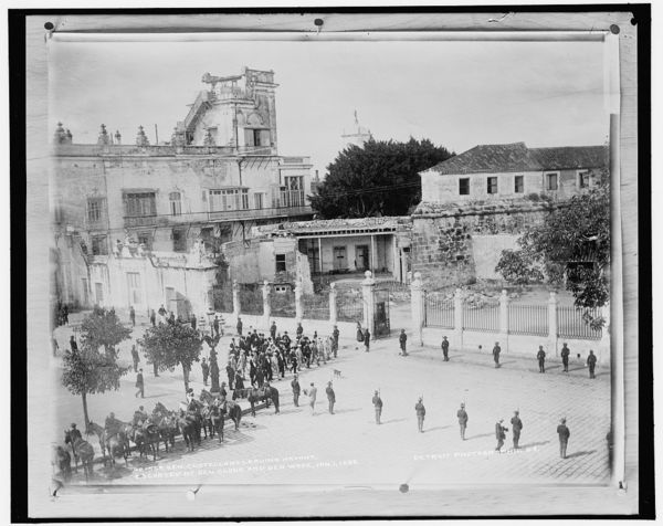 Gen. Custellano i.e. Adolfo Jiménez Castellanos leaving Havana escorted by Gen. Clons i.e. Clous and Gen. Wade