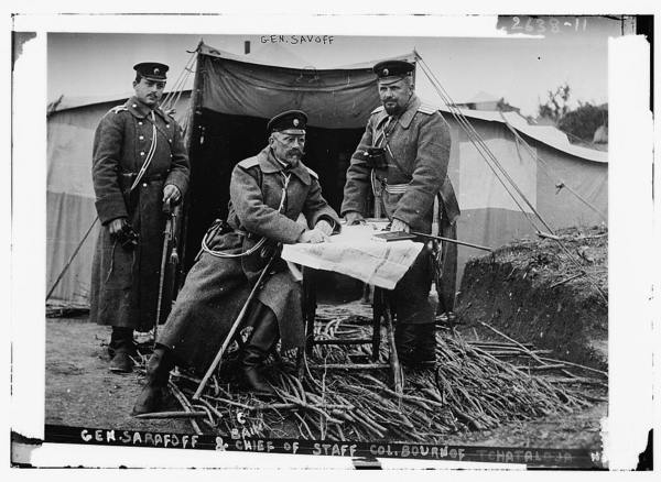 Gen. Sarafoff & Chief of Staff Col. Bournof, Tchataldja