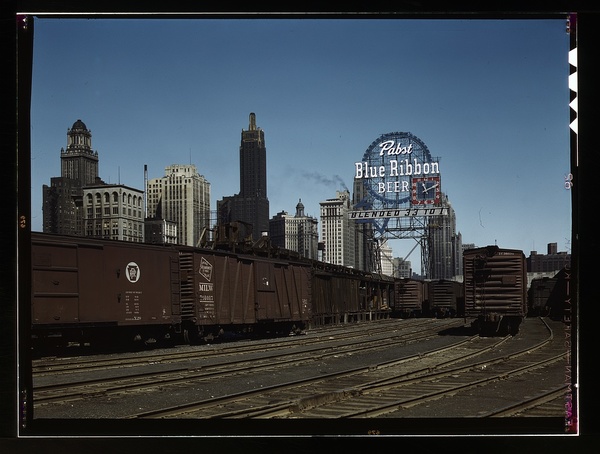 General view of part of the South Water Street freight depot of the Illinois Central Railroad, Chicago, Ill.