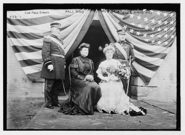 Generals Fred. Grant and Leonard Wood standing, Mrs. Wood and Mrs. Grant seated