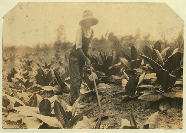 George Barbee, 13 years old hoeing. Lives near Bell School. Location: Nicholas County, Kentucky / Lewis W. Hine.
