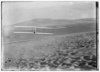 Orville making right turn, showing warping of wings, hill visible in front of him; Kitty Hawk, North Carolina