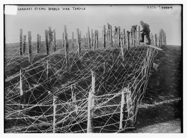Germans fixing barbed wire tangle