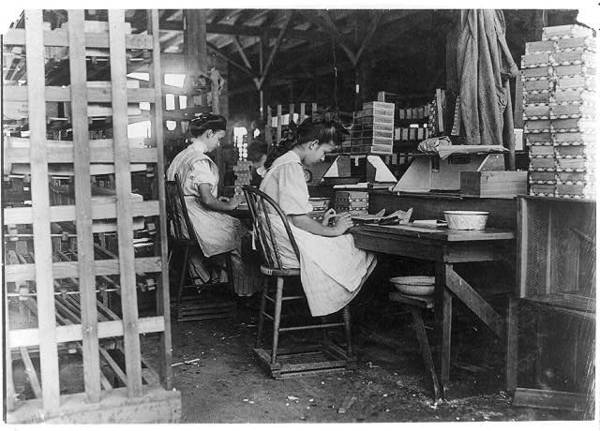 Girls working in Tampa, Fla., Box Factory. I saw 10 small boys and girls. Has had reputation for employment of youngsters but work is slack now. Jan. 28, 1909. Location: Tampa, Florida.