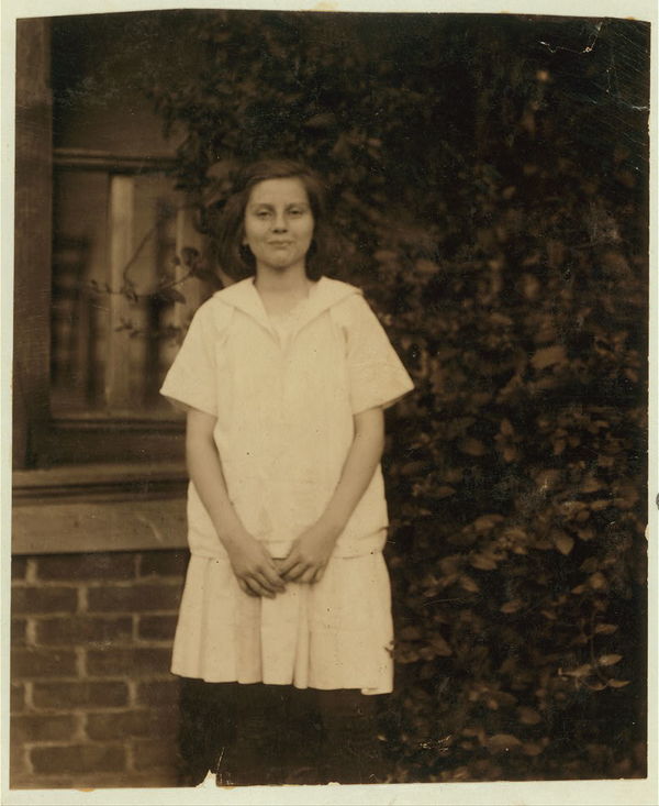 Gladys Goodrum, 116 Short Street, Columbus, Ga. Said 12 years old. Seen working nearly one year as looper in Massey Hosiery Mill. Makes $9. a week sometimes. Location: Columbus, Gerogia.