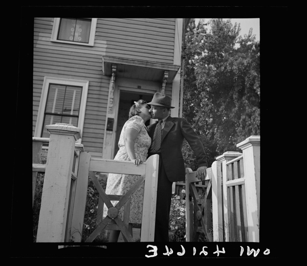 Gloucester, Massachusetts. John Riberia, captain of the fishing trawler Old Glory, kissing his wife before leaving for the fishing grounds off the Massachusetts coast