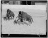 Indians hunting bison on horses covered with bisonskins
