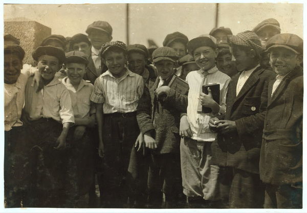 Going to School. About 14-16 years. Watson School - Flint Village. Location: Fall River, Massachusetts. / Lewis W. Hine.