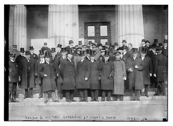 Group photograph: Gov. Barnes, Brady, Vessey, Hawley, Eberhart, Oddie, Burke at Waldor Astoria