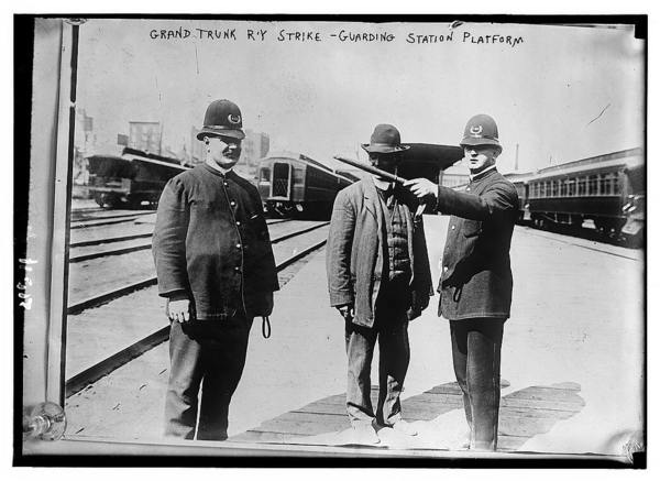 Grand Trunk R'y i.e., Railway strike- guarding station platform