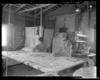 Grandmother from Oklahoma with grandson, working on quilt. California, Kern County