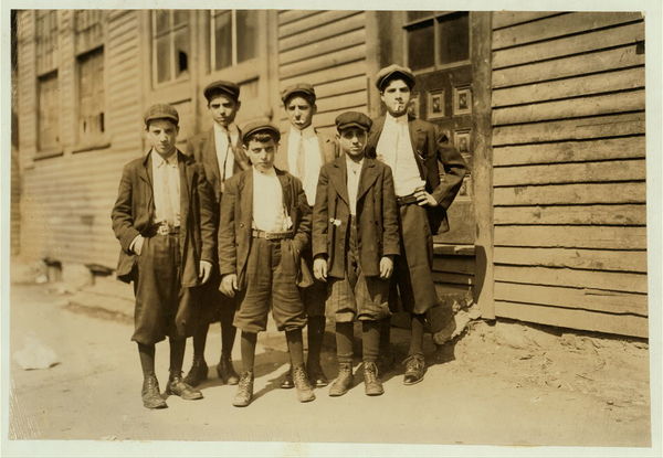 Group in which the two smallest are Camillo De Marco, 129 Common St., to right of picture (see 2470). Joseph Dangolo, to left of picture, 61 Common Street. Location: Lawrence, Massachusetts.