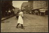 9 year old girl carrying garments down Blackstone Street, Boston, Mass., to a Hanover Street home. She finishes 8 pairs of trousers a day and gets 8 cents a piece. Location: Boston, Massachusetts.