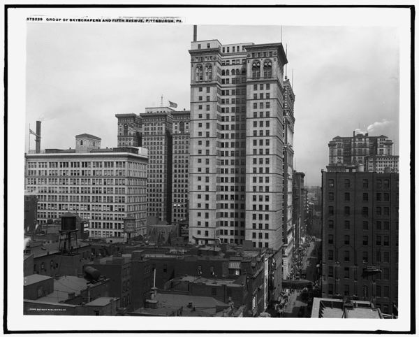Group of skyscrapers and Fifth Avenue, Pittsburgh, Pa.