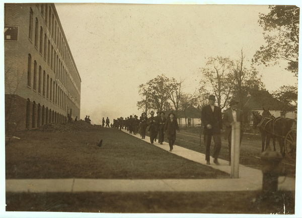 Group of workers coming out of Hamilton Brown Shoe Company,. Location: Columbia, Missouri.