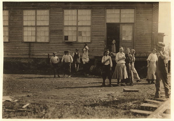 Group of workers in the Shaw Cotton Mills going home. Several violations. Location: Weldon, North Carolina.