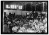 Group, showing a few of the workers stringing beans in the J. S. Farrand Packing Co. Baltimore, Md. Those too small to work are held on laps of workers or stowed away in boxes.  Location: Baltimore, Maryland.