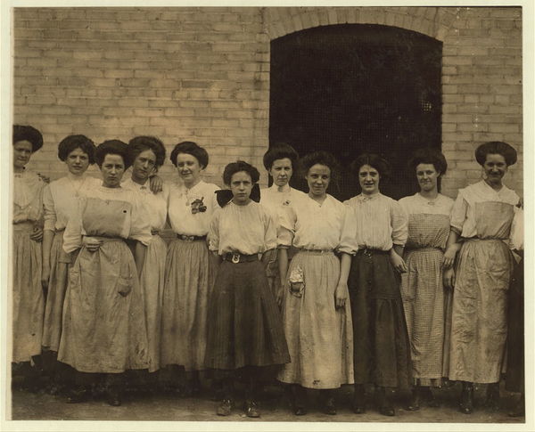 Groups of workers in Hand's Silk Mill. Location: Wilmington, Delaware.