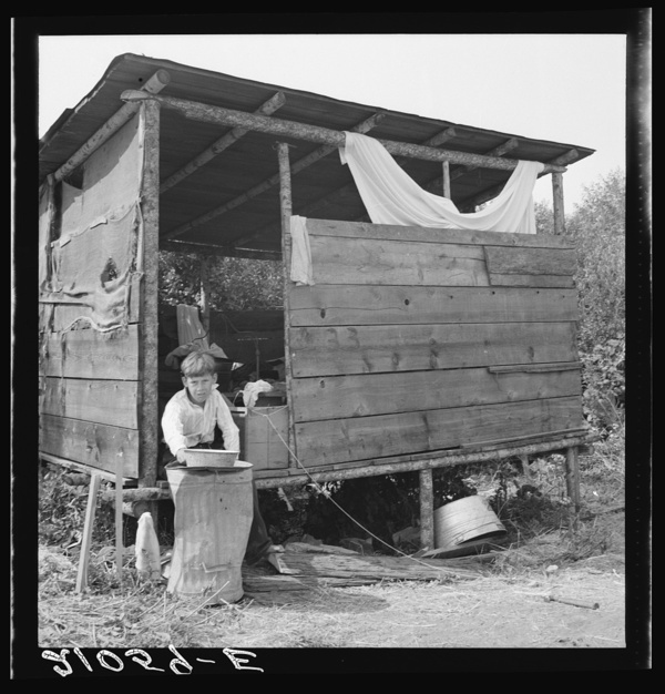 Grower provides fourteen such shacks in a row for his hop pickers. Josephine County, Oregon. Near Grants Pass, Josephine County, Oregon. General caption number 45-11