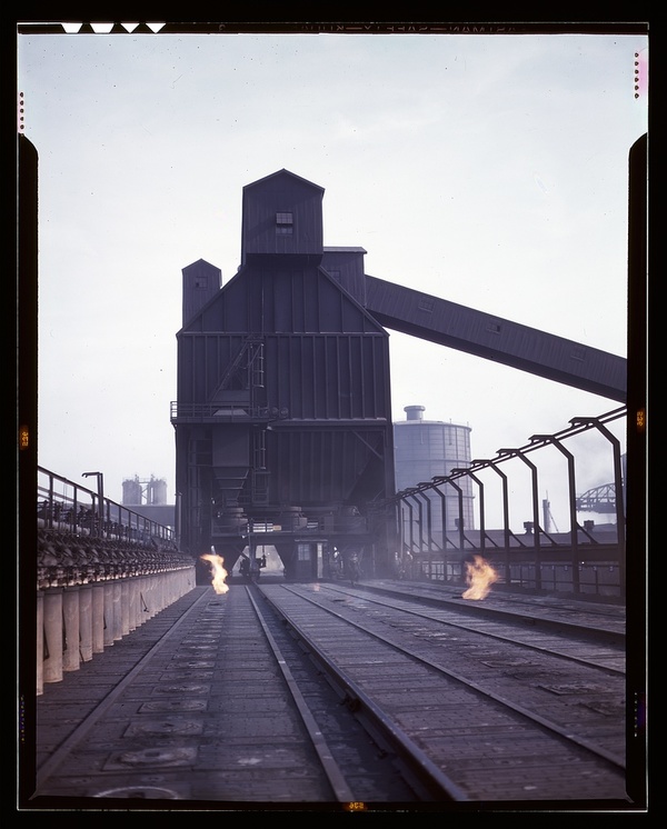 Hanna furnaces of the Great Lakes Steel Corporation, Detroit, Mich. Coal tower atop coal ovens