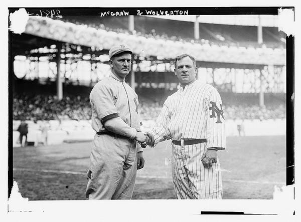 Harry Wolverton, New York AL, at left and John McGraw, New York NL, at right at the Polo Grounds, NY, 1912 (baseball)