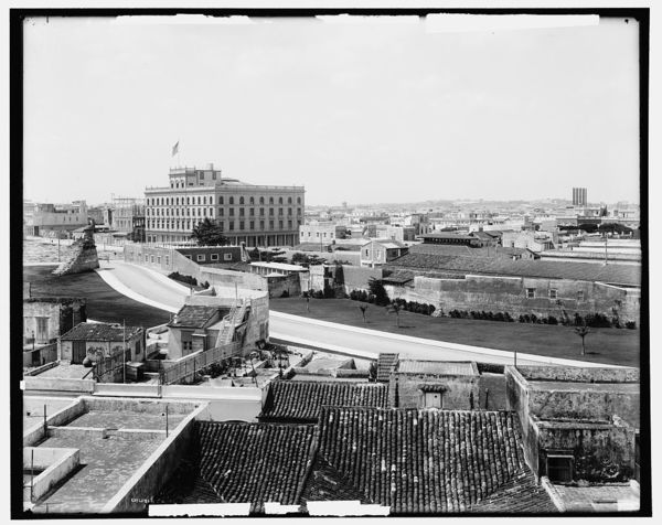 Gardens of Colonial Hotel and the harbor, Nassau, Bahama Islands