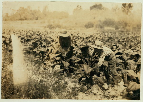 Hayward and Harry Bentley suckering the tobacco. Location: Hebbardsville, Kentucky / Lewis W. Hine.
