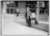 Ten-year-old child carrying a box of artificial leaves from Leroy St. across B'roadway, New York. Location: New York, New York (State)