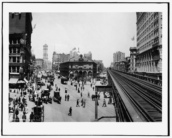 Trinity churchyard and skyscrapers, New York, N.Y.