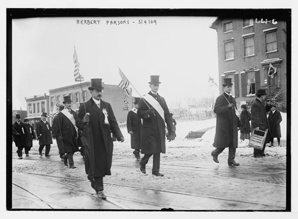 Herbert Parsons, marching with flag