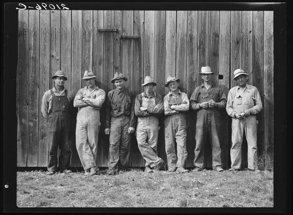 Here are the farmers who have bought machinery cooperatively. Photographed just before they go to dinner on the Miller farm where they are working. West Carlton, Yamhill County, Oregon