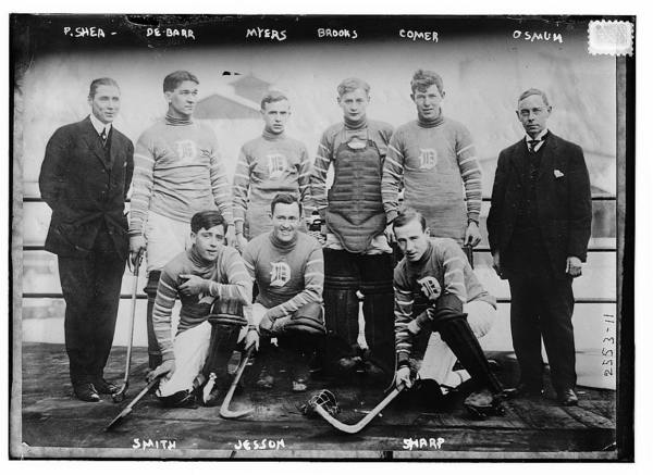 Hockey team - P. Shea, De Barr, Myers, Brooks, Comer, Osmum, Smith, Sharp, and Jesson