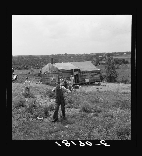 Home on "Scratch Hill," outside Atoka, Oklahoma. "I was offered twenty dollars for that house. I pay six dollars rent a year, and have some chickens and a garden"