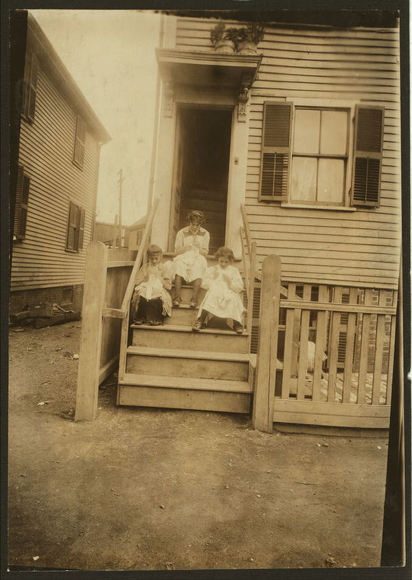 Home Work, Somerville, Mass. Crocheting on underwear. A common sight. 35 Horace Street. See also Home Work report about woman working here with running sore on limb. Location: Somerville, Massachusetts.