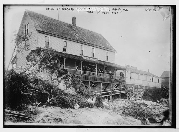 Hotel on Niagara, "Angler's Reteat" piled 60 feet high from ice, New York State